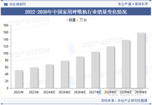 近年来,中国度用呼吸机的销量呈现显著增加趋向。跟着老龄化社会的到来和慢性呼吸疾病患病率的上升,市场需求不竭添加。新冠疫情也促使更多家庭关心呼吸健康,进一步鞭策了呼吸机的销量。线上渠道(如电商平台)和线下渠道(如病院、药店、医疗器械专卖店)配合鞭策了家用呼吸机的发卖。出格是电商平台的兴起,使得呼吸机发卖愈加便利和普遍。估计2030年中国度用呼吸机销量上涨至160万台。